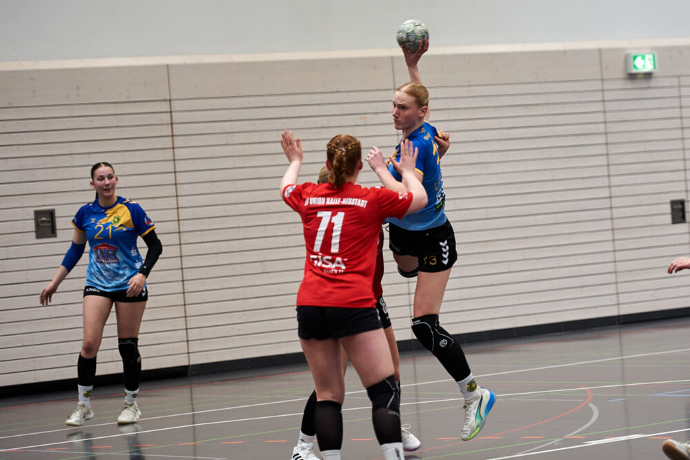 Die zweite Halbzeit verlief dann auch gleich nach dem Geschmack des VfB und der zahlreichen Anhänger. Binnen kurzer Zeit wurde die Führung auf 18:13 ausgebaut. Von dieser deutlichen Führung offenbar geblendet, wurde nun im Angriff mit immer weniger Druck und Durchsetzungsvermögen gespielt. Zudem fand man in der Abwehr kaum Zugriff auf die gegnerischen Angreiferinnen. Der Vorsprung wurde schnell geringer und spätestens beim 21:20, in Spielminute 32, war das Spiel wieder völlig offen. Von der Aufholjagd des Tabellenführers zeigten sich die Schiebockerinnen beeindruckt und spielten insbesondere in der Abwehr sehr fehlerbehaftet. Bis zum 25:25 verlief das Spiel ausgeglichen, dann konnten die Gäste mit einem 3:0-Lauf mit 25:28 in Führung gehen. Nun zeigten aber auch die VfB-Mädels, dass sie kämpfen können. Tor um Tor konnte wieder aufgeholt werden und nachdem der Ausgleich zum 29:29 erzielt werden konnte, gelang sogar die erneute Führung zum 30:29. Die Mannschaft aus Halle-Neustadt konnte nun ebenfalls ihren 30. Treffer bejubeln und es ging in die letzte Spielminute. Leider fand der Ball nicht mehr den Weg ins Tor der Gäste und der Ballgewinn im letzten Angriff von den Hallenserinnen erfolgte unmittelbar vor der Schlusssirene, so dass die Zeit für einen Abschluss nicht mehr reichte. Damit endete ein spannendes und von einer tollen Atmosphäre getragenes Spiel unentschieden. Dadurch können die VfB-Mädels mit einem Sieg im abschließenden Spiel in Wittenberg „nur“ noch den zweiten Tabellenrang erreichen. Der dritte Platz wurde bereits vor zwei Spieltagen gesichert. (shar)