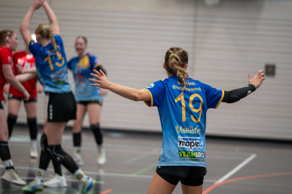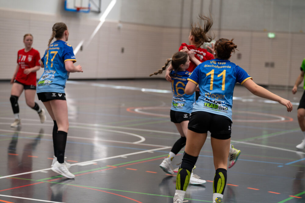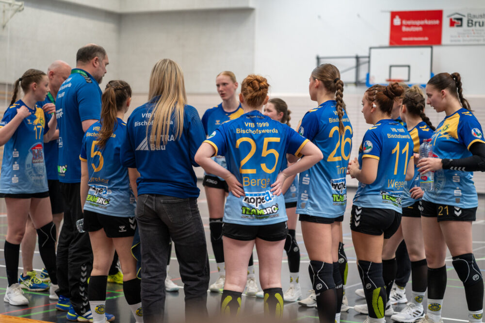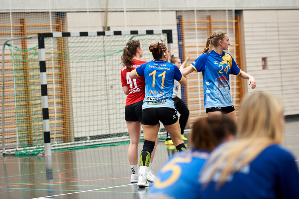 Die ersten zehn Spielminuten verliefen zunächst sehr ausgeglichen. In der Abwehr wurde gut gearbeitet und der Gegner zu Fehlern gezwungen. Im Angriff konnte dies jedoch noch nicht zum Vorteil genutzt werden, da die eigene Chancenverwertung noch ausbaufähig war. In der Folgezeit waren die Abschlüsse konzentrierter, wodurch die Bischofswerdaerinnen mit 6:4, in der 13. Spielminute, in Führung gehen konnten. Diese konnte zunächst durch ein sehenswertes Angriffsspiel behauptet und beim 12:9 nach 20 Spielminuten auf drei Tore ausgebaut werden. Danach unterliefen jedoch einfache Fehler im Angriffsspiel und in der Abwehr agierte man zu passiv. Beim 12:11 waren die Gäste wieder auf Tuchfühlung, was die VfB-Mädels allerdings zum Anlass nahmen, wieder einen Gang zuzulegen. Bis zum Pausenpfiff konnte so erneut eine Drei-Tore-Führung, beim Spielstand von 16:13, erzielt werden. In der Kabine wurde zunächst die gute Leistung im Abwehrverbund gelobt. Diese führte zum Vorsprung und sollte mit dem gleichen Kampfeswillen und Engagement fortgesetzt werden. Zudem wurden die ersten Angriffshandlungen für Halbzeit zwei vorgegeben.
