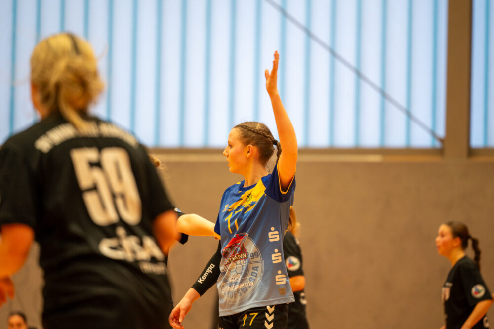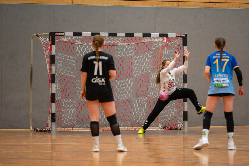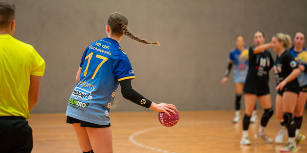 Bereits zu Beginn zeigten sich die Bischofswerdaerinnen nervös und fehlerbehaftet im Spielaufbau. Trotz zahlreicher Passfehler und Fehlwürfe konnte oft der Spielverlauf ausgeglichen gestaltet werden. Der anfängliche 5:3-Rückstand wurde in der zehnten Spielminute wieder egalisiert mit dem Ausgleichstreffer zum 5:5. Weitere Unaufmerksamkeiten im Angriffsspiel und fehlende Zuordnung in der Abwehr führten zu einem ersten Dreitorerückstand von 9:6. Nun folgte eine starke Phase der VfB-Mädels und zwei Spielminuten später lagen sie mit 9:10 vorn. Trotz dieses Zwischenspurts konnte die Mannschaft aber nicht die notwendige Sicherheit gewinnen und es unterliefen ihr immer wieder unnötige und ungewohnte Fehler im Angriffsspiel. Davon irritiert zeigte man sich auch im Deckungsverbund oft unaufmerksam und stellenweise auch etwas unglücklich. Bis zur Halbzeitpause konnten die Hallenserinnen somit wieder das Ruder in ihre Richtung reißen und mit einer 19:17-Halbzeitführung in die Kabine gehen. In der Halbzeitpause wurde ein bessereres Rückzugsverhalten, mehr Kommunikation im Abwehrverbund und ein konzentrierteres Angriffsspiel gefordert.