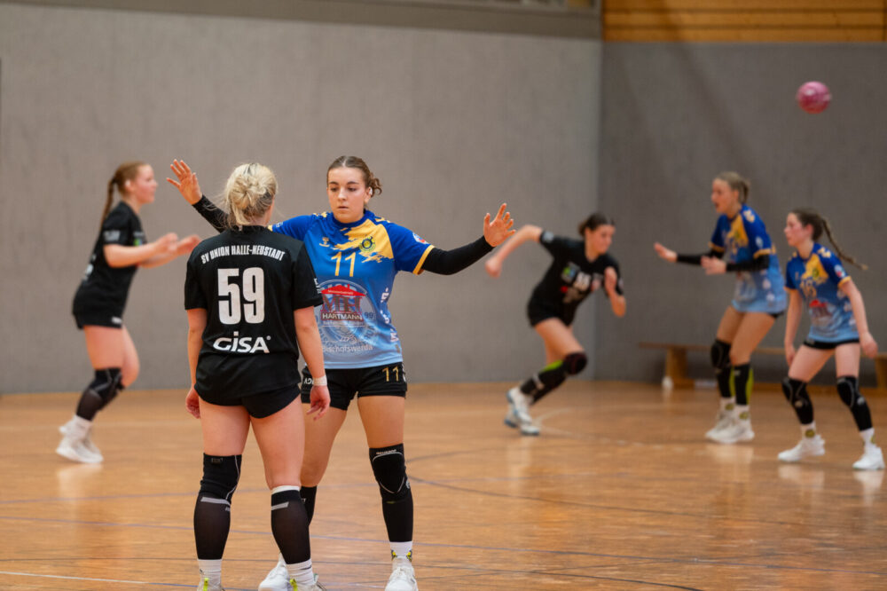 Der siebte Spieltag führte die weibliche Jugend B zum Bundesliganachwuchs des SV Union Halle-Neustadt. Diese konnten bisher alle ihre Begegnungen erfolgreich gestalten. Die VfB-Mädels konnten nach der Niederlage zum Saisonauftakt ebenfalls ihre Spiele gewinnen und die Begegnung konnte daher zurecht als Spitzenspiel bezeichnet werden. Von der Spannung und Dramaturgie hatte das Spiel auch viel zu bieten für die zahlreich mitgereisten Eltern. Am Ende sollten auch nur Sekunden für einen möglichen Punktgewinn fehlen. Eine zu hohe Fehleranzahl verhinderte aber einen erfolgreichen Spielausgang für die Schiebockerinnen.