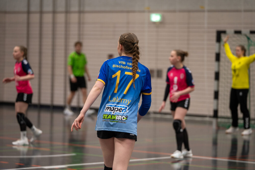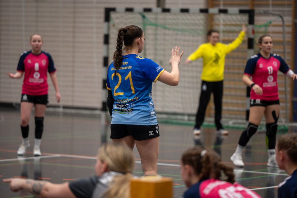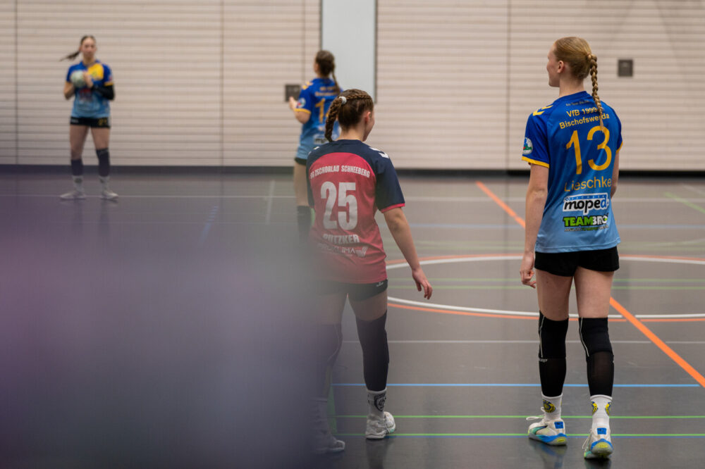 Von Beginn an zeigten sich die Bischofswerdaerinnen im Angriff zielstrebig. In der Startphase wurde fast jeder Angriff erfolgreich vorgetragen und die Gäste fanden keinen Zugriff auf die entschlossenen Durchbrüche. Insbesondere Melina-Jolie Lalurny und Tessa Sensch zeigten ihre Torgefahr und nutzten die großen Lücken in der Defensive der SG Zschorlau/Schneeberg. In der Abwehr wurde gut verschoben und kompakt verteidigt. Die Gästespielerinnen mussten einen erheblich höheren Aufwand betreiben, um Tore zu erzielen. Bereits in der neunten Minute, beim Spielstand von 9:6, musste der Übungsleiter der SG zur ersten Auszeit bitten. Während das Konzept der Gastgeber aufging, musste die Taktik der Mannschaft aus Westsachsen korrigiert werden. Auch wenn diese bis zur 13. Spielminute auf 12:11 aufschließen konnten, hatte man nie das Gefühl, dass zwei gleichwertige Mannschaften aufeinandertrafen. Besonders Helene Lieschke zeigte nun ihre Torgefahr und für das eine oder andere Raunen durch ihren unnachahmlichen Zug zum Tor. In der 18. Spielminute betrug der Vorsprung bereits wieder fünf Tore beim 17:12. Nach Toren von Finja Timm und Helene Lieschke betrug der Vorsprung, beim 20:14, erstmals sechs Tore. Bis kurz vor der Pause konnten die Gäste wieder auf 22:18 verkürzen. In der ersten Auszeit für den VfB wurde der letzte Angriff bei verbleibenden acht Sekunden besprochen. Die Vorgaben wurden von der Mannschaft umgesetzt und zur Pause stand es 23:18.