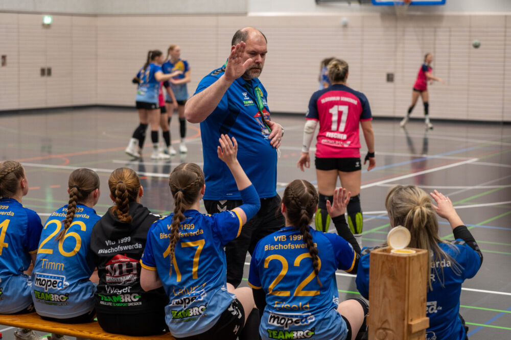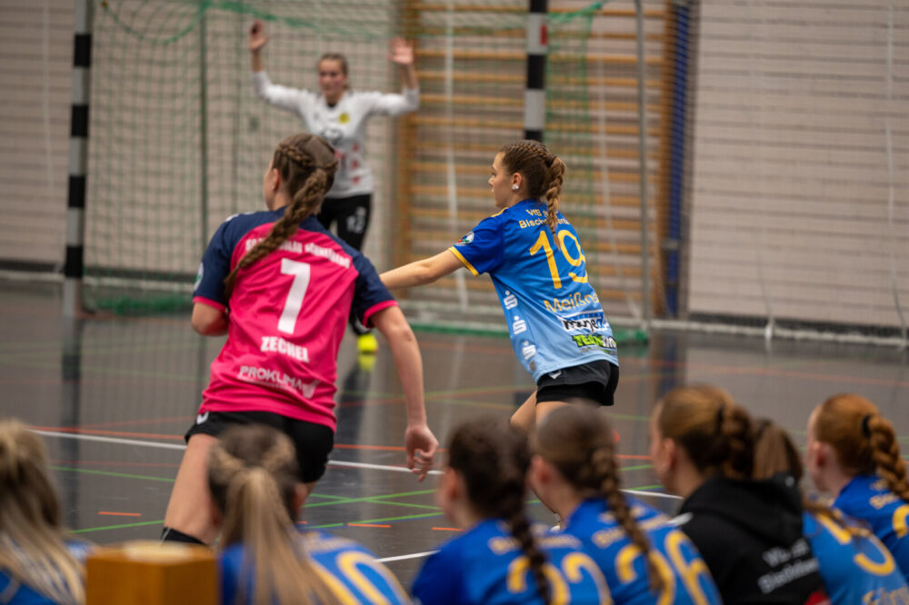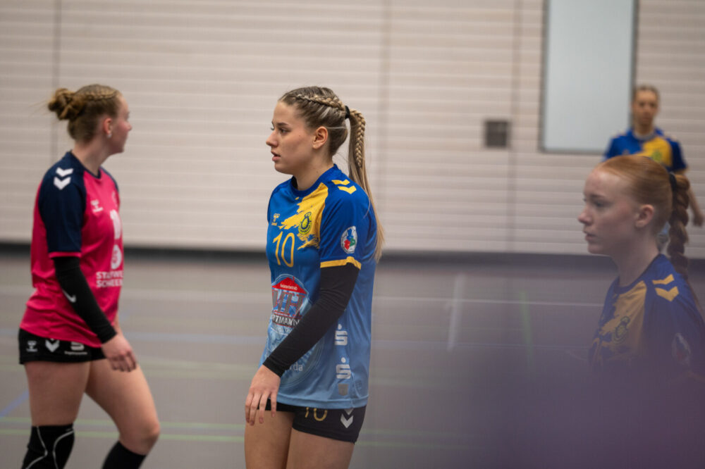 Trainer Sebastian Hartmann lobte in der Kabine seine Mannschaft für den tollen Auftritt bis dahin und forderte die gleiche Entschlossenheit und Leidenschaft für die verbleibende Spielzeit. Zudem sollte die verbleibende Überzahlphase, aufgrund einer Hinausstellung gegen die SG Zschorlau/Schneeberg zum Ende der ersten Halbzeit, genutzt werden, um weiter davonzuziehen. Diese Zeitstrafe geriet bei der Gästebank nach Wiederanpfiff aber erst einmal in Vergessenheit, so dass diese kurz nach Wiederanpfiff eine weitere Hinausstellung hinnehmen mussten. Diese wurde umgehend durch die Schiebockerinnen genutzt, um auf 25:18 zu erhöhen. Auch in der Folgezeit wurde nicht locker gelassen und weitere Tore von Melina-Jolie Lalurny, Larissa Klose und Jette Eisold sorgten für eine 31:21-Führung in der 32. Spielminute. Der Betreuer der Erzgebirgerinnen versuchte den Offensivdrang mit einer weiteren Auszeit zu stoppen, aber egal was er an dem Tag versuchte, die VfB-Mädels hatten darauf eine Antwort. Insbesondere in der Abwehr zeigten sich die Gastgeber als kompakte Einheit. Im Angriff konnten sich bis kurz vor Ende auch Leni Meißner und Amelie Läsker mit Toren belohnen und auch Martha Huhnstock zeigte sowohl im Angriff als auch in der Abwehr einen starken Auftritt. Aber auch die ohne Tor gebliebenen Luci Förster und Leni Berge konnten zum deutlichen Sieg durch gute Defensivarbeit beitragen. Nicht zu vergessen an dem Tag ist Maya John, welche insbesondere in der zweiten Halbzeit starke Paraden zeigte. Am Ende wurde noch der i-Punkt gesetzt. Larissa Klose bediente mustergültig Helene Lieschke, welche mit einem tollen Kempa den Schlusspunkt zum 42:29 setzte. Durch den überzeugenden Erfolg bleibt die Mannschaft weiter im Rennen um die Medaillenränge vorn dabei. In drei Wochen geht es auswärts gegen die junge Mannschaft aus Zwickau weiter. Bis dahin gilt es weiter zu trainieren, um auch im vierten Spiel der Rückrunde einen souveränen Eindruck zu hinterlassen. (shar)