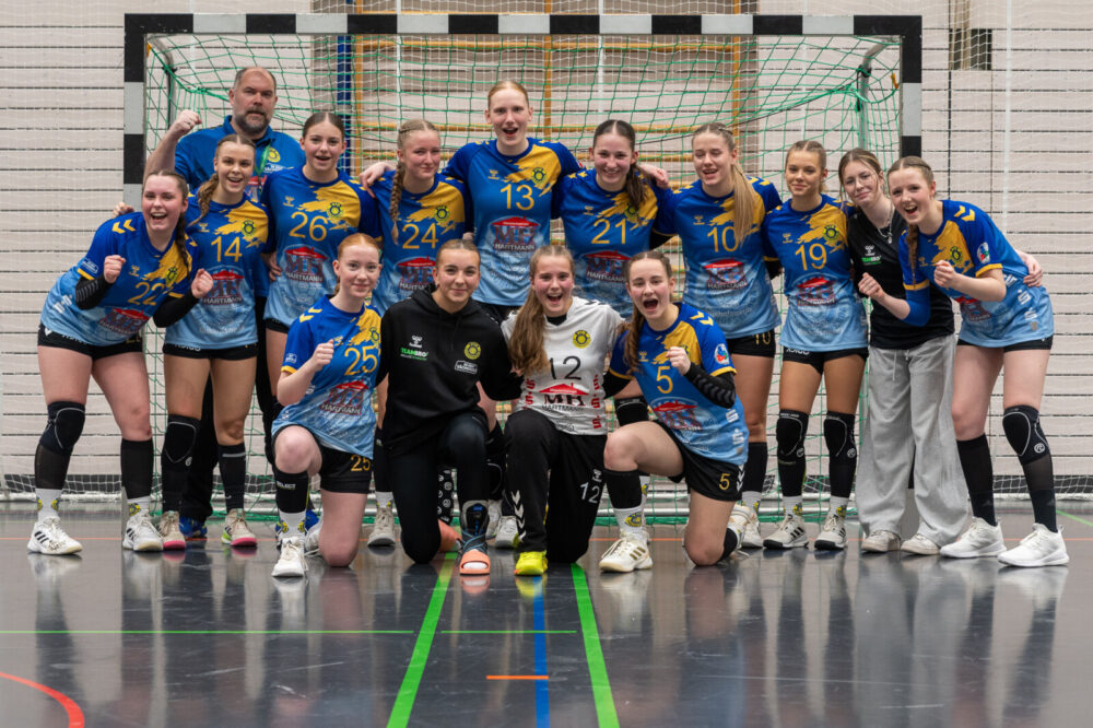 Trainer Sebastian Hartmann lobte in der Kabine seine Mannschaft für den tollen Auftritt bis dahin und forderte die gleiche Entschlossenheit und Leidenschaft für die verbleibende Spielzeit. Zudem sollte die verbleibende Überzahlphase, aufgrund einer Hinausstellung gegen die SG Zschorlau/Schneeberg zum Ende der ersten Halbzeit, genutzt werden, um weiter davonzuziehen. Diese Zeitstrafe geriet bei der Gästebank nach Wiederanpfiff aber erst einmal in Vergessenheit, so dass diese kurz nach Wiederanpfiff eine weitere Hinausstellung hinnehmen mussten. Diese wurde umgehend durch die Schiebockerinnen genutzt, um auf 25:18 zu erhöhen. Auch in der Folgezeit wurde nicht locker gelassen und weitere Tore von Melina-Jolie Lalurny, Larissa Klose und Jette Eisold sorgten für eine 31:21-Führung in der 32. Spielminute. Der Betreuer der Erzgebirgerinnen versuchte den Offensivdrang mit einer weiteren Auszeit zu stoppen, aber egal was er an dem Tag versuchte, die VfB-Mädels hatten darauf eine Antwort. Insbesondere in der Abwehr zeigten sich die Gastgeber als kompakte Einheit. Im Angriff konnten sich bis kurz vor Ende auch Leni Meißner und Amelie Läsker mit Toren belohnen und auch Martha Huhnstock zeigte sowohl im Angriff als auch in der Abwehr einen starken Auftritt. Aber auch die ohne Tor gebliebenen Luci Förster und Leni Berge konnten zum deutlichen Sieg durch gute Defensivarbeit beitragen. Nicht zu vergessen an dem Tag ist Maya John, welche insbesondere in der zweiten Halbzeit starke Paraden zeigte. Am Ende wurde noch der i-Punkt gesetzt. Larissa Klose bediente mustergültig Helene Lieschke, welche mit einem tollen Kempa den Schlusspunkt zum 42:29 setzte. Durch den überzeugenden Erfolg bleibt die Mannschaft weiter im Rennen um die Medaillenränge vorn dabei. In drei Wochen geht es auswärts gegen die junge Mannschaft aus Zwickau weiter. Bis dahin gilt es weiter zu trainieren, um auch im vierten Spiel der Rückrunde einen souveränen Eindruck zu hinterlassen. (shar)