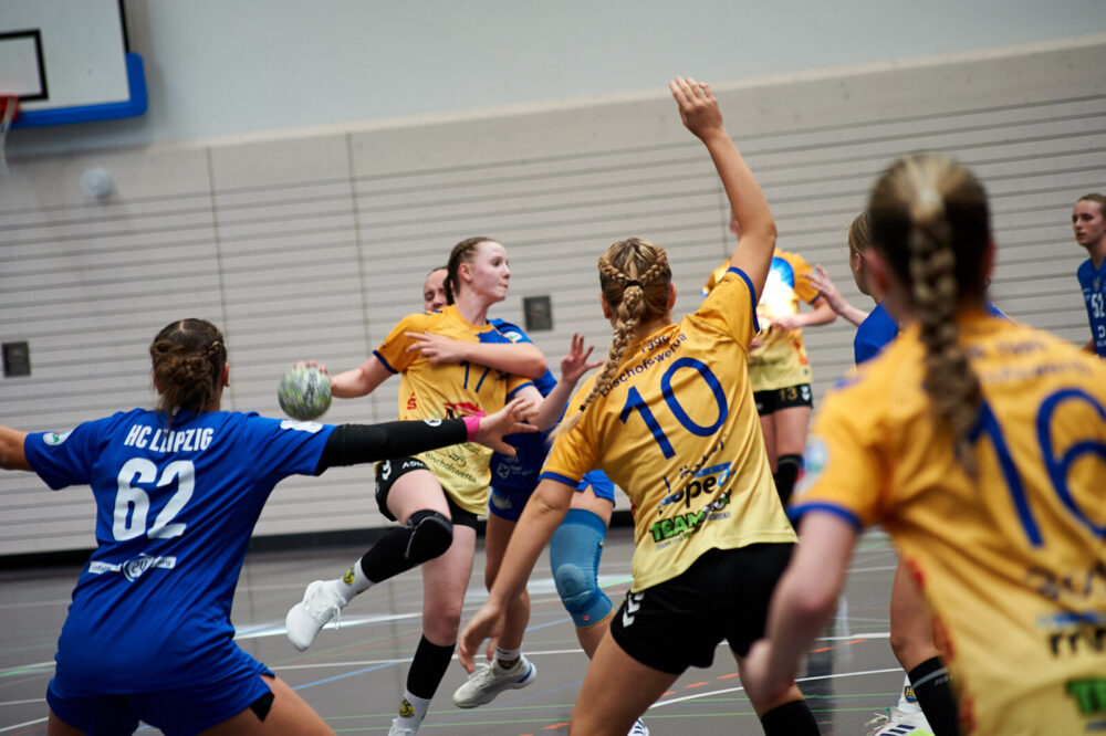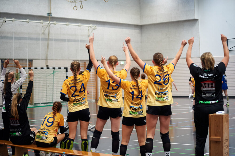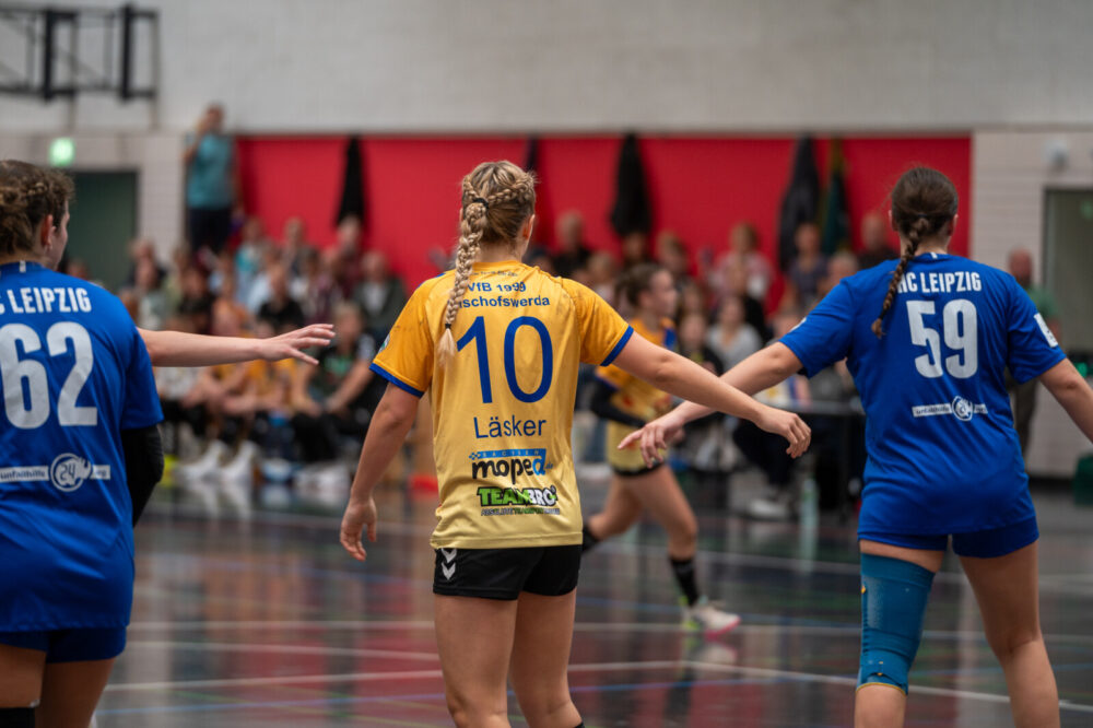 Zu Beginn der zweiten Halbzeit zeigte sich zunächst ein ähnlicher Spielverlauf wie in Hälfte eins. Allerdings konnte man nun ein entschlosseneres Angriffsverhalten der Schiebockerinnen erkennen, was zwei schnelle Zeitstrafen für die Messestädterinnen zur Folge hatte. Diese blieben zunächst bis zum 15:15 ungenutzt, dennoch spürte man den Kampfeswillen der VfB-Mädels. Nach einer erneuten Zeitstrafe gegen den HC Leipzig, sorgte zunächst ein sicher verwandelter Strafwurf durch Melina-Jolie Lalurny für die erneute Führung. Zwei schnelle Ballgewinne wurden innerhalb der Überzahlphase sicher genutzt. Beim 18:15 versuchten die Gäste den Angriffsschwung mit einer Auszeit zu unterbinden. Dies gelang für kurze Zeit bis zum 21:18. Ein erneuter 3:0-Lauf durch Tore von Tessa Sensch, Caya Weger und Helene Lieschke sorgte aber für eine beruhigende 24:18-Führung. Die jungen Leipzigerinnen gaben sich jedoch nicht auf und kämpften sich wieder auf 25:20 heran. Nach der anschließenden Auszeit der Gastgeber sorgte aber ein Doppelschlag von Helene Lieschke und ein sehenswerter Treffer von der Außenposition von Luci Förster für die Vorentscheidung (28:20). Auch Maya John konnte sich nun mehrfach auszeichnen und gute Wurfgelegenheiten der Leipzigerinnen zunichtemachen. Die Schlussphase wurde dann auch noch etwas zum Testen genutzt. Auch wenn nicht alles gelang, zeigte aber insbesondere Jette Eisold mit der letzte Aktion des Spiels, was der Grundstein für den Erfolg war, Kampfeswille.