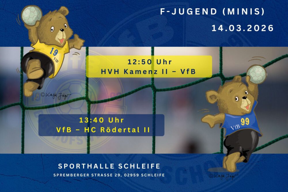 Das einzige Team, das am Samstag nicht im Wesenitzsportpark spielt, ist die gemischte Jugend F. Die Mädchen und Jungen fahren nach Schleife, um in zwei Spielen gegen die zweiten Mannschaften des HVH Kamenz und des HC Rödertal anzutreten. Wir wünschen unseren Kleinsten viel Erfolg und vor allem viel Spaß.