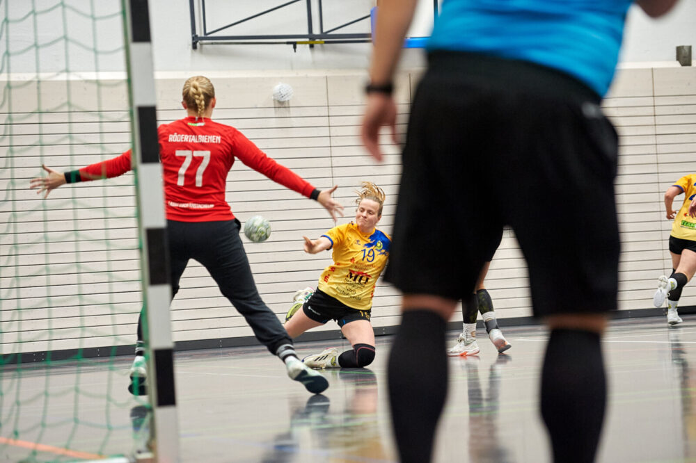 Zu Beginn verlief die Partie ausgeglichen und nach 12 Minuten stand es 5:5. Danach konnten die Damen mit 2 Toren in Führung gehen, was eine Auszeit bei den Gästen auf den Plan rief. Zunächst zeigte sie Wirkung, doch dann konnten die Schiebockerinnen auf 3 Tore davonziehen. Diesen Vorsprung konnte man aber nicht lange halten, da die Damen aus Rödertal jegliche Erfahrenheit ausspielten und bis zur Halbzeit auf 14:15 stellen konnten.